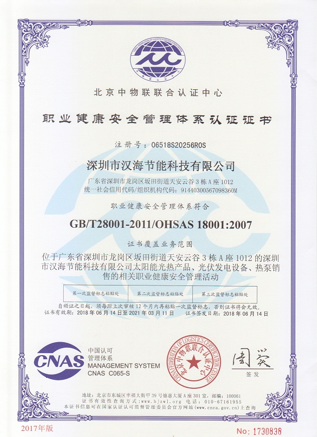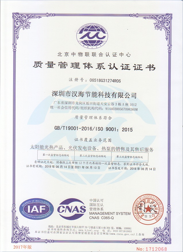 深圳市漢海節(jié)能科技有限公司成立于2011年,注冊資金6000萬元,總部設在深圳,是一家集設計、研發(fā)、施工于一體的專業(yè)化從事太陽能中央熱水工程、熱泵中央熱水工程、中央空調(diào)、光伏發(fā)電、水處理等新能源及節(jié)能環(huán)保行業(yè)的綜合服務商和工程商。在將近10年的發(fā)展歷程中,始終走在行業(yè)發(fā)展的前沿,是專業(yè)從事太陽能光熱、光伏,空氣源、太陽能熱水工程、水源熱泵,中央空調(diào),水處理產(chǎn)品的設計、安裝、售后服務為一體的高新技術(shù)企業(yè);是專業(yè)提供太陽能中央熱水工程、熱泵中央熱水工程、中央空調(diào)工程、光伏發(fā)電工程、水處理工程、太陽能熱水工程等全面解決方案的供應商和工程商,產(chǎn)品涵蓋太陽能集熱器、空氣源熱泵、水源熱泵、中央空調(diào)、光伏組件、太陽能熱水工程等,是新能源的倡導者和推動者。公司成立以來,始終秉承“誠信、責任、專業(yè)、高效”的服務宗旨,以市場需求為導向,以為客戶創(chuàng)造價值為己任的精神,不斷開拓創(chuàng)新,通過多年的快速發(fā)展,公司綜合實力躍居行業(yè)前列。漢海擁有一支經(jīng)驗豐富、善打硬仗的專業(yè)高效團隊;擁有一批專業(yè)的高級工程師、中級工程師、二級建造師、造價工程師、電氣設計師、給排水設計師;擁有一批機電、安防、水、電等專業(yè)技術(shù)施工和售后人員,配備先進齊全,實力雄厚,技術(shù)領先。漢海以質(zhì)量樹信譽、以工藝立標桿、以管理創(chuàng)效益、以服務得人心,工藝水平在業(yè)界獨樹一幟,成為行業(yè)模仿的典范。漢海承建的機電工程(設計、施工)涉及星級酒店、賓館、高檔辦公樓、花園別墅、住宅小區(qū)、學校、水療中心、工廠等各種類型的工程,工程項目遍布全國各地。漢海將致力于成為全球信賴的新能源綜合服務商,為客戶提供新能源的全方位解決方案。未來,漢海將依托國家政策,積極開拓粵港澳大灣區(qū)、中國特色社會主義先行示范區(qū)市場及“一帶一路”沿線國際市場,推動新能源的新輝煌。